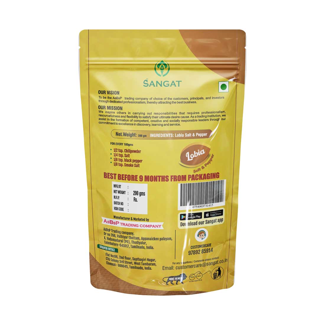 Sangat brings you this authentic mouth-watering Special Lobia Salt & Pepper. This snack is the blend of many tasteful ingredients, it is a mix of gram flour, wholesome grain and a lot more. This special snack is so crunchy, tasty and colourful. It’s so tasty that you can’t stop eating it all day long. It makes a good tea time snack when you want to munch something.